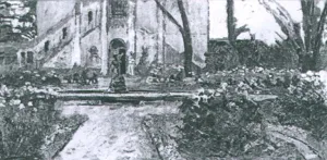 Autoportret na tle dworku w Wielgiem