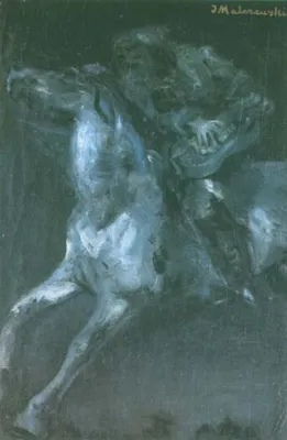 Jacek Malczewski (Radom 1854 - Kraków 1929) - wybitny przedstawiciel malarstwa polskiego modernizmu, studia artystyczne rozpoczął w krakowskiej Szkole Sztuk Pięknych, gdzie w latach 1872-1875 uczył się pod kierunkiem Feliksa Szynalewskiego, Władysława Łuszczkiewicza i Jana Matejki, do którego pracowni uczęszczał ponownie w latach 1877-1879. Następnie kształcił się w Paryskiej École des Beaux Arts u E. Lehmanna (1876-1877).