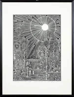 Henryk Płóciennik (Łódź 1933, Łódź 2020) malarz i grafik samouk. Zdobył wysoką pozycję jako grafik, pracujący głównie w technikach linorytu i autocynkografii. Jest autorem fantastycznych kompozycji o bogatym, ornamentalnym opracowaniu, obrazujących w zamyśle autora kosmiczne piękno i ład świata. Wielokrotnie wystawiał w kraju i za granicą, zdobywając liczne nagrody. Jego twórczość jest reprezentowana w czołowych zbiorach muzealnych, jak Muzeum Sztuki w Łodzi, liczne muzea narodowe i okręgowe, Biblioteka Jagiellońska i in. W 2004 w Łodzi powstała Fundacja „Arkadia” jego imienia, której celem jest zebranie, opracowanie i popularyzacja twórczości artysty. Artysta był również miłośnikiem i ko...