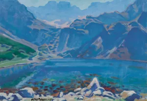 Alfred Terlecki (Warszawa 1883 - Kraków 1973) w latach 1906-1917 studiował pod kierunkiem Leona Wyczółkowskiego i Józefa Mehoffera w Akademii Sztuk Pięknych w Krakowie. W okresie 1915-1919 uczył rysunku w szkołach w Zakopanem. Należał do Grupy Zachęta i do ZPAP. Malował przede wszystkim dekoracyjnie stylizowane pejzaże tatrzańskie, w tym wiele z otoczenia Morskiego Oka czy Hali Gąsienicowej. Malował tez widoki Krakowa, portrety i wnętrza. Zajmował się drzeworytem. Prace artysty znajdują się, m.in. w Muzeach Narodowych Warszawy i Krakowa; ale największy ich zespół posiada Muzeum Tatrzańskie w Zakopanem.