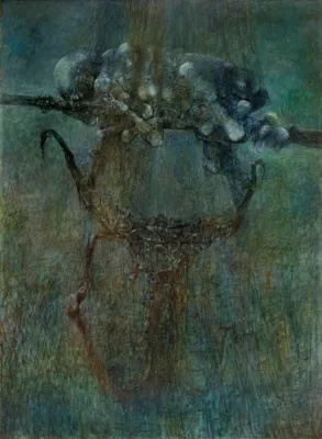 Zdzisław Beksiński (Sanok 24 II 1929 - Warszawa 21 II 2005) studiował w latach 1947-1952 na Wydziale Architektury Politechniki Krakowskiej. Był artystą samoukiem, który osiągnął niekwestionowaną pozycję w polskiej sztuce współczesnej, potwierdzoną obecnością jego prac na prestiżowych wystawach i w kolekcjach muzealnych. Początkowo zajmował się fotografią, którą interesował się od lat studenckich, po 1956 zyskując uznanie jako twórca fotogramów o estetyce opartej o efekty fakturowe. W latach 1958-1962 tworzył abstrakcyjne obrazy-reliefy o bogatej fakturze, głównie metalowe, będące odmianą malarstwa materii. Pod koniec tego okresu powstawały ażurowe formy o kształtach figur i pełnoplastyczn...