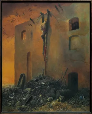 Zdzisław Beksiński (Sanok 24 II 1929 - Warszawa 21 II 2005) studiował w latach 1947-1952 na Wydziale Architektury Politechniki Krakowskiej. Był artystą samoukiem, który osiągnął niekwestionowaną pozycję w polskiej sztuce współczesnej, potwierdzoną obecnością jego prac na prestiżowych wystawach i w kolekcjach muzealnych. Początkowo zajmował się fotografią, którą interesował się od lat studenckich, po 1956 zyskując uznanie jako twórca fotogramów o estetyce opartej o efekty fakturowe. W latach 1958-1962 tworzył abstrakcyjne obrazy-reliefy o bogatej fakturze, głównie metalowe, będące odmianą malarstwa materii. Pod koniec tego okresu powstawały ażurowe formy o kształtach figur i pełnoplastyczn...
