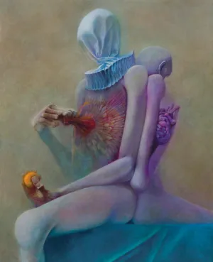 Zdzisław Beksiński (Sanok 24 II 1929 - Warszawa 21 II 2005) studiował w latach 1947-1952 na Wydziale Architektury Politechniki Krakowskiej. Był artystą samoukiem, który osiągnął niekwestionowaną pozycję w polskiej sztuce współczesnej, potwierdzoną obecnością jego prac na prestiżowych wystawach i w kolekcjach muzealnych. Początkowo zajmował się fotografią, którą interesował się od lat studenckich, po 1956 zyskując uznanie jako twórca fotogramów o estetyce opartej o efekty fakturowe. W latach 1958-1962 tworzył abstrakcyjne obrazy-reliefy o bogatej fakturze, głównie metalowe, będące odmianą malarstwa materii. Pod koniec tego okresu powstawały ażurowe formy o kształtach figur i pełnoplastyczn...