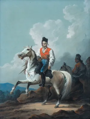 Aleksander Orłowski (Warszawa 1777 – Petersburg 1832) - malarz, rysownik i grafik. Protegowany księżnej Izabelli Czartoryskiej, w latach 1793-1801 kształcił się w pracowni J. P. Norblina, który wywarł zasadniczy wpływ na całą jego późniejszą twórczość. Dorywczo uczył się także w zamkowej „malarni” M. Bacciarellego, u miniaturzysty W. de Lesseura i sztycharza B. Folino. Brał udział w powstaniu kościuszkowskim. Okresowo pracował dla ks. Józefa Poniatowskiego i dla ks. Heleny Radziwiłłowej. W roku 1802 wyjechał na Litwę, a stamtąd do Petersburga, gdzie zamieszkał na stałe, zyskując wkrótce ogromną popularność. Został nadwornym rysownikiem wielkiego księcia Konstantego, pracował też dla cesarza Aleksandra I. W roku 1809 otrzymał tytuł akademika petersburskiej Akademii Sztuk Pięknych. Był przede wszystkim rysownikiem, chętnie malował też pastelami i olejno. Tematyka jego prac była różnorodna: tworzył sceny batalistyczne, rysował i malował wschodnich jeźdźców, charakterystyczne typy ludowe, sceny z życia wsi, pejzaże, portrety i karykatury. Od 1816 zajmował się litografią, popularyzując tę technikę na terenie Rosji. Był wybitną postacią polskiej kolonii artystycznej w Petersburgu. Z podziwem pisał o Orłowskim Aleksander Puszkin, odnajdujący w jego sztuce cechy bliskie własnym, romantycznym ideałom, a zaprzyjaźniony z nim Adam Mickiewicz w „Panu Tadeuszu” kilka wierszy poświęcił „naszemu malarzowi Orłowskiemu”, który mimo, że „życie strawił w Peterburku | Sławny malarz (mam jego kilka szkiców w biurku),| Mieszkał tuż przy cesarzu, na dworze, jak w raju,| A nie uwierzy Hrabia, jak tęsknił po kraju,| Lubił ciągle wspominać swej młodości czasy,| Wysławiał wszystko w Polszcze: ziemię, niebo, lasy...”