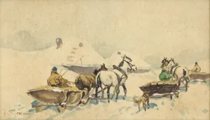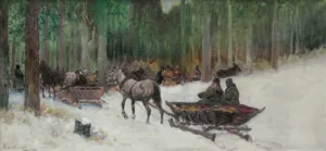 Adam Setkowicz (Kraków 1876 - Kraków 1945) to popularny malarz scen rodzajowych z zaprzęgami, polowaniami, saniami i śniegami, malowanych akwarelą bądź olejno, w których wyraźnie nawiązywał do prac A. Wierusza-Kowalskiego, J. Brandta czy też J. Fałata. O życiu artysty wiadomo jednak niewiele poza tym, że w latach 1891-1894 kształcił się w krakowskiej Szkole Sztuk Pięknych, gdzie w 1897/1898 kontynuował studia pod kierunkiem Teodora Axentowicza. W 1933 wziął udział w wystawie w Piotrkowie Trybunalskim.