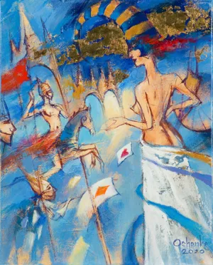 olej, akryl, złoty gwasz, płótno - 40 x 50cm