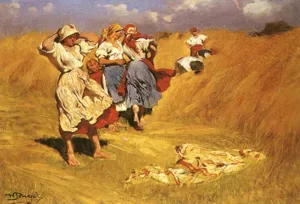 Włodzimierz Przerwa-Tetmajer (Harklowa koło Ludźmierza na Podhalu 1862 - Kraków 1923), przyrodni brat poety Kazimierza, naukę malarstwa rozpoczął wcześnie; już od 1875 uczęszczał na zajęcia do Szkoły Sztuk Pięknych w Krakowie, gdzie następnie (z przerwami) kształcił się do 1895 - początkowo u Franciszka Cynka, Leopolda Loefflera i Władysława Łuszczkiewicza, a po 1889 u Jana Matejki. Równolegle studiował filologię klasyczną na Uniwersytecie Jagiellońskim. W 1882 uczył się jeszcze w Akademii Wiedeńskiej, a w latach 1886-89 w Akademii Monachijskiej u Aleksandra Wagnera. Studia uzupełniał w paryskiej Académie Colarossi. Stypendium cesarskie umożliwiło mu wyjazd do Rzymu. Po powrocie mieszkał w Krakowie. W 1890 ożenił się z Anną Mikołajczykówną, córką gospodarza z podkrakowskiej wsi Bronowice, gdzie sam często przebywał, a w 1895 zamieszkał na stałe. W 1901 założył i następnie przez kilka lat prowadził szkołę malarstwa dla kobiet. Od 1899 był członkiem Towarzystwa Artystów Polskich „Sztuka”; w 1901 jednym z założycieli Towarzystwa „Polska Sztuka Stosowana”; w 1908 współzałożycielem grupy „Zero”. Był wybitnym przedstawicielem nurtu „ludowości”, malarzem obyczajów, pracy i krajobrazu podkrakowskiej wsi. We wcześniejszym okresie tworzył w duchu akademickiego, monachijskiego realizmu. Później wykształcił własny, oryginalny styl - kompozycja jego obrazów była swobodna, malował szerokimi pociągnięciami pędzla, używał jasnych, żywych barw. W latach 1892-1894 współpracował z Wojciechem Kossakiem i Janem Styką przy Panoramie Racławickiej. Projektował witraże, zajmował się ilustratorstwem i malarstwem ściennym, m.in. w 1902 wykonał polichromię kaplicy królowej Zofii w Katedrze na Wawelu. Artysta był pierwowzorem postaci Gospodarza w dramacie S. Wyspiańskiego Wesele.