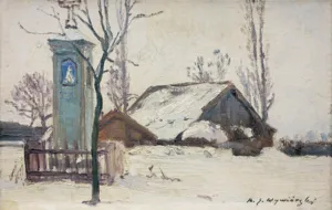 PEJZAŻ ZIMOWY Z KAPLICZKĄ, ok. 1900