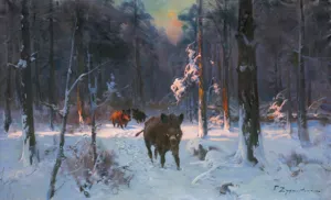 DZIKI W ZIMOWYM LESIE