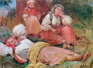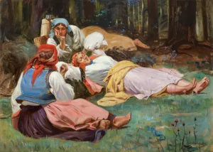 Wincenty Wodzinowski studia malarskie rozpoczął w latach 1880 - 1881 w warszawskiej Klasie Rysunkowej pod kierunkiem W. Gersona; następnie, w latach 1881 - 1889 studiował w Szkole Sztuk Pięknych w Krakowie, m.in. u W.Łuszczkiewicza, L.Loefflera F.Cynka i J.Matejki; a w latach 1889-92 w Akademii Sztuk Pięknych w Monachium u A.Wagnera. W roku 1896 zamieszkał w Swoszowicach k. Krakowa i został profesorem malarstwa na Wyższych Kursach dla Kobiet przy krakowskim Muzeum Techniczno-Przemysłowym. Zaprzyjaźniony z I.Korwin-Milewskim, znanym kolekcjonerem i mecenasem sztuki, w latach 1892 - 1907 pracował głównie na jego zamówienie. We wcześniejszym okresie malował portrety, poźniej przede wszystkim t...