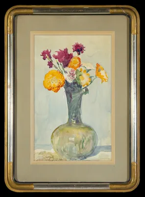 BUKIET KWIATÓW W SZKLANYM WAZONIE, 1920