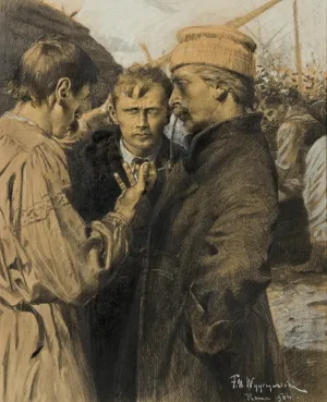 Feliks Michał Wygrzywalski (Przemyśl 1875 - okolice Rzeszowa 1944) w latach 1893-98 studiował w ASP w Monachium pod kierunkiem J.C.Hertericha i K.Marra. Studia uzupełniał w Académie Julian w Paryżu. Już w czasie studiów wyjeżdżał do Włoch, a po 1900 przez kilka lat mieszkał w Rzymie. W 1906 podróżował do Egiptu. W 1908 na stałe osiadł we Lwowie. W latach 1909-14 pracował w tamtejszym teatrze jako inspektor sceny. Jeszcze kilkakrotnie podróżował do Włoch. Był malarzem realistą; we wcześniejszym okresie twórczości skłaniał się ku naturalizmowi i silnej ekspresji. Dużą wagę przywiązywał do efektów świetlnych, stosował bogatą, żywą gamę barwną. We wczesnych obrazach często przedstawiał ludzką...