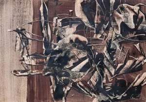 gwasz, tusz, frottage, papier - 29.2 x 41cm