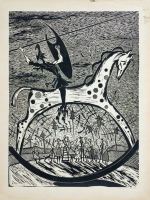 Stefan Rassalski (1910 - 1972) -malarz, grafik, historyk sztuki, publicysta. Studiował w Lublinie, dyplom uzyskał na warszawskiej ASP. Od 1932 r. uprawiał drzeworyt, początkowo pod silnym wpływem Tadeusza Kulisiewicza i sztuki ludowej. Z czasem w pracach rozwinął treści symboliczne i literackie. Jego dzieła odznaczają się oszczędnością faktury i dyscypliną kompozycji. Na początku działalności artystycznej związany z Lublinem, gdzie w latach 1928-33 kształcił się w kierowanej przez Janinę Miłosiową Wolnej Wszechnicy Malarstwa i Rysunku. Wtedy zaczął interesować się drzeworytem. Pierwsze grafiki wykonał w 1932 r., a rok później własnym kosztem wydał tekę drzeworytów "Lublin". Jeden ...
