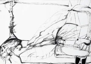 tusz pióro, tusz niebieski pędzel, papier kremowy - 62.3 x 48.5cm