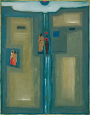 Jerzy Nowosielski (Kraków 1923 - Kraków 2011) w 1940 zaczął studia w Kunstgewerbeschule w Krakowie. W 1942 przebywał przez niecały rok w Ławrze św. Jana Chrzciciela pod Lwowem. Studiował tam sztukę malowania i historię ikon. Po powrocie do Krakowa w 1943 nawiązał ponowne kontakty z kręgiem przyszłej Grupy Krakowskiej. Po wojnie kontynuował studia w ASP w Krakowie pod kierunkiem prof. Eugeniusza Eibischa (1945-1947). Na I Wystawie Sztuki Nowoczesnej w Krakowie w 1948/49 pokazał obrazy utrzymane w nurcie abstrakcji geometrycznej. W latach socrealizmu nie wystawiał, zajmując się w tym czasie scenografią oraz malowaniem cerkwi i kościołów. W 1955 w Łodzi zaprezentował swą pierwszą wystawę ind...
