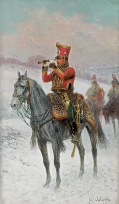 Jan Chełmiński (Brzustów k. Opoczna 1851 – Nowy Jork 1925) popularny malarz z kręgu „polskich monachijczyków“, naukę rozpoczął u Juliusza Kossaka, a następnie kształcił się w warszawskiej Klasie Rysunkowej oraz w Monachium - w Akademii u Alexandra Strähubera i Alexandra Wagnera (1873-1875) i prywatnych pracowniach Józefa Brandta (1875) i batalisty Franza Adama (1876). Po studiach przebywał już stale za granicą - w Monachium, Londynie (lata 1882, 1888-1899), Paryżu (1899), jeździł do Petersburga (1889) i Nowego Jorku (1884), gdzie później, około 1915 zamieszkał na stałe. Nie zerwał jednak kontaktów z krajem, a swoje prace często przesyłał na warszawskie wystawy. Jego obrazy cieszyły się og...