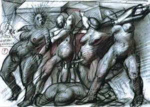 kredki barwne (sepia, sangwina), papier - 63 x 46cm