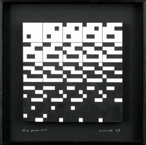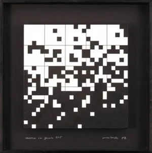 Ryszard Winiarski (Lwów 1936 - Warszawa 2006) ukończył w 1959 Politechnikę Warszawską i podjął studia malarskie w ASP w Warszawie (1960-1966). Pod koniec studiów, w 1965 sformułował własny program artystyczny i zrealizował pierwsze prace z serii pt. „Próby wizualnej prezentacji rozkładów statystycznych“. Otrzymał za nie I nagrodę na Sympozjum Artystów i Naukowców w Puławach w 1966. Jako stałe moduły prac przyjął kwadraty w kolorach czerni i bieli, których kolejnością i rozmieszczeniem rządzi przypadek - rzut kostką do gry, losowanie lub wybór liczb przypadkowych. W 1970 wprowadził do swych prac trzeci wymiar w formie obrazów przestrzennych lub jako iluzję przestrzeni uzyskaną przez wykreś...