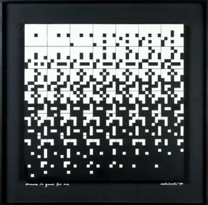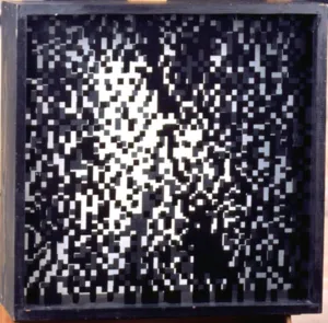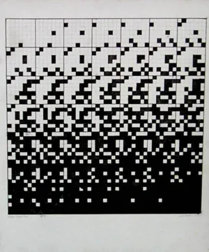 Ryszard Winiarski (Lwów 1936 - Warszawa 2006) ukończył w 1959 Politechnikę Warszawską i podjął studia malarskie w ASP w Warszawie (1960-1966). Pod koniec studiów, w 1965 sformułował własny program artystyczny i zrealizował pierwsze prace z serii pt. „Próby wizualnej prezentacji rozkładów statystycznych“. Otrzymał za nie I nagrodę na Sympozjum Artystów i Naukowców w Puławach w 1966. Jako stałe moduły prac przyjął kwadraty w kolorach czerni i bieli, których kolejnością i rozmieszczeniem rządzi przypadek - rzut kostką do gry, losowanie lub wybór liczb przypadkowych. W 1970 wprowadził do swych prac trzeci wymiar w formie obrazów przestrzennych lub jako iluzję przestrzeni uzyskaną przez wykreś...