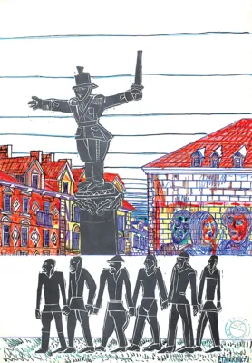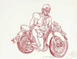 Edward Dwurnik (Radzymin 19 IV 1943 - Warszawa 28 X 2018) studiował malarstwo w ASP w Warszawie (1963-1970), jednak jako swego „mistrza“ wymienia Nikifora. Jego to prace, zobaczone po raz pierwszy w 1965, zainspirowały ówczesnego studenta III roku do narysowania pierwszych prac z cyklu „Podróże autostopem“, które kontynuował w nastepnych latach. W 1972-1978 powstawał cykl „Sportowcy“, w którym portretowane były, dodajmy - kąśliwie, typowe postaci z lat 70. Równolegle od 1975 powstawał cykl „Robotnicy“, który kulminował w okresie „Solidarności“ 1980-1981. Za prace z tego cyklu Dwurnik otrzymał w 1981 Nagrodę Krytyki Artystycznej im. Cypriana Kamila Norwida, natomiast za obrazy z cyklu „War...