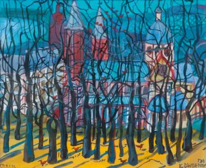 Edward Dwurnik (Radzymin 19 IV 1943 - Warszawa 28 X 2018) studiował malarstwo w ASP w Warszawie (1963-1970), jednak jako swego „mistrza“ wymienia Nikifora. Jego to prace, zobaczone po raz pierwszy w 1965, zainspirowały ówczesnego studenta III roku do narysowania pierwszych prac z cyklu „Podróże autostopem“, które kontynuował w nastepnych latach. W 1972-1978 powstawał cykl „Sportowcy“, w którym portretowane były, dodajmy - kąśliwie, typowe postaci z lat 70. Równolegle od 1975 powstawał cykl „Robotnicy“, który kulminował w okresie „Solidarności“ 1980-1981. Za prace z tego cyklu Dwurnik otrzymał w 1981 Nagrodę Krytyki Artystycznej im. Cypriana Kamila Norwida, natomiast za obrazy z cyklu „War...