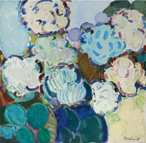 Tadeusz Dominik (Szymanów 14 I 1928 - Warszawa 20 V 2014) studiował na Wydziale Malarstwa ASP w Warszawie pod kierunkiem prof. J.Cybisa (1946-51, dyplom 1953). Od 1951 był pedagogiem na macierzystym Wydziale, początkowo jako asystent Cybisa. Od 1965 prowadził własną pracownię, w 1979 otrzymał tytuł profesora. W 1990 przeszedł na emeryturę. W czasie studiów oddziałały nań - za pośrednictwem osobowości i sztuki Cybisa - idee polskiego koloryzmu, które następnie twórczo i samodzielnie kontynuował. Początkowo tworzył obrazy figuratywne. Debiutował na słynnej wystawie w warszawskim Arsenale w 1955, gdzie zdobył nagrodę. W tym okresie obok malarstwa uprawiał drzeworyt, operujący szerokimi płasz...
