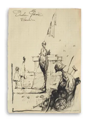 tusz pióro, papier zeszytowy w kratkę - 21 x 14.9cm
