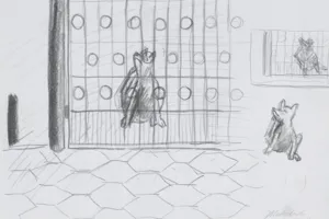 SZKIC DO OBRAZU „PIESEK DRAPIE SIĘ ZA BRAMĄ”