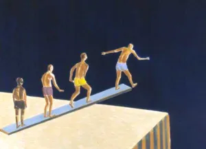 Jarosław Modzelewski (Warszawa 1955, mieszka w Warszawie) studiował malarstwo w ASP w Warszawie w latach 1975-1980, uzyskując dyplom w pracowni Stefana Gierowskiego. Od 1982 pracuje jako pedagog na macierzystym wydziale. W 1982 był współzałożycielem „Gruppy”, najważniejszego ugrupowania nurtu nowej ekspresji lat 80., działającego do 1992. W latach 1991-1996 wspólnie z Markiem Sobczykiem prowadził prywatną Szkołę Sztuki w Warszawie. Od wielu lat współpracuje z Galerią Zderzak w Krakowie. W początkowym okresie twórczości skłaniał się ku abstrakcji, wykorzystywał uproszczone znaki i emblematy oraz sylwetki odbite z szablonu. W 1985 namalował cykl oparty na ilustracjach do podręczników języka...