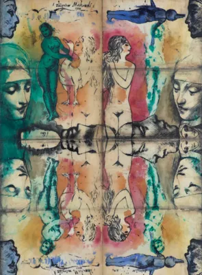 Zbigniew Makowski  (Warszawa 31 I 1930 - Warszawa 19 VIII 2019) studiował w ASP w Warszawie w latach 1950-1956, dyplom uzyskał w pracowni Kazimierza Tomorowicza. Początkowo skłaniał się ku surrealizmowi - podczas pobytu w Paryżu w 1962 zetknął się z André Bretonem i międzynarodowym ruchem Phases. Jednak decydujący wpływ na wyraz jego sztuki wywarły pozamalarskie zainteresowania, jakim się oddaje. Jest literatem, poetą, erudytą, zwłaszcza zaś znawcą szerokiego spektrum filozofii i wiedzy tajemnej wielu kultur. Znawstwo to wykorzystuje w swoich pracach malarskich, rysunkowych, a także w unikatowych książkach, które własnoręcznie wykonuje na specjalnie preparowanych papierach. W swych pracac...