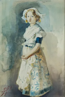 DZIEWCZYNA W BIAŁYM FARTUSZKU, ok. 1890