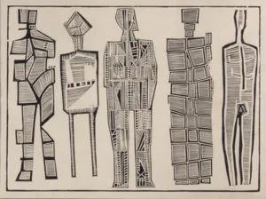 Jerzy Panek (Tarnów 1918 - Kraków 2001) odbył studia graficzne w Państwowym Instytucie Sztuk Plastycznych w Krakowie (1937-1939). Kontynuował je w Kunstgewerbeschule (1940-1942), a następnie na Wydziale Malarstwa ASP w Krakowie (1945-1948, dyplom 1955). W 1955 odbył podróż do Chin. Przez rok uczył rysunku i malarstwa na Wydziale Form Przemysłowych ASP w Krakowie (1967-1968). Od początku lat 50. skupił się na technice drzeworytu, którą traktował niekonwencjonalnie, mianowicie jako okazję do pracy na pograniczu rzeźby. Klocki drzeworytnicze Panka odznaczały się nie tylko wielkimi rozmiarami, ale i tym, że ich "powierzchnie drukujące" zredukowane były do syntetycznych, oszczędnych za...