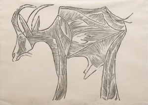drzeworyt,papier krem. żeberk - 32.5 x 41.2cm