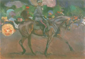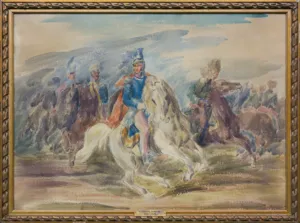 Eugeniusz Geppert (Lwów 1890 - Wrocław 1979) w latach 1912-14 i 1918-1920 studiował w krakowskiej Akademii Sztuk Pięknych pod kierunkiem Jacka Malczewskiego i Stanisława Dębickiego. Dyplom uzyskał w roku 1920. W latach 1925-1927 jako stypendysta ZPAP przebywał w Paryżu, dokąd i później wielokrotnie wyjeżdżał. W 1928 wrócił do kraju i zamieszkał w Krakowie. Należał do grup „Zwornik” i „Nowa Generacja”, był członkiem redakcji „Głosu Plastyków” oraz wiceprezesem i przedstawicielem Polski w „Confédération Internationale des Associations Plastiques”. Po wojnie osiadł na stałe we Wrocławiu, gdzie został profesorem Państwowej Wyższej Szkoły Sztuk Plastycznych, w różnych latach pełniąc funkcje dyrektora, rektora, kierownika pracowni malarskiej. W 1962 był współzałożycielem ugrupowania plastyków, tzw. „Szkoły Wrocławskiej”. Jednym z ulubionych motywów jego malarstwa byli jeźdźcy konni, przedstawiani tak w scenach historycznych, jak i współczesnych, batalistycznych i rodzajowych. Artysta nawiązywał tu do całej tradycji polskiego malarstwa, w szczególności do obrazów P. Michałowskiego. Malował także pejzaże, martwe natury i akty. Z czasem ciemna tonacja jego płócien uległa rozjaśnieniu, a kompozycja obrazów swoistej dekoracyjnej stylizacji w duchu malarstwa francuskiego, m.in. R. Dufy. Artysta brał udział w licznych wystawach – w okresie międzywojennym, podczas pobytu w Paryżu kilkakrotnie wystawiał na Salonie Jesiennym i w paryskich galeriach, później wielokrotnie w TPSP w Krakowie i Lwowie oraz w TZSP, IPS-ie i Salonie Garlińskiego w Warszawie. Swoje prace prezentował też za granicą, m.in. w 1938 na Międzynarodowej Wystawie Sztuki w Pittsburghu. Wiele wystaw miał też w okresie powojennym.