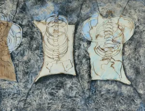 Marek Oberländer (Szczerzec k. Lwowa 1922 - Nicea 1978) w czasie wojny służył w Armii Czerwonej. W latach 1946-48 uczył się w Liceum Sztuk Plastycznych w Warszawie. Następnie w latach 1948-53 studiował w warszawskiej ASP. W 1955, wraz z Elżbietą Grabską, Janem Dziędziorą i Jackiem Sienickim był współorganizatorem Ogólnopolskiej Wystawy Młodej Plastyki, która pod nazwą „Arsenału” weszła do legendy polskiej sztuki współczesnej. Jednym z symboli postawy i stylistyki „arsenałowej” stał się pokazany na tej wystawie obraz Oberländera Napiętnowani. W latach 1956-61 artysta kierował galerią działającą pod patrontem tygodników kulturalno-społecznych, kolejno: „Po Prostu”, „Nowej Kultury” i „Współczesności”. W 1963 wyjechał do Szwecji, w 1964 osiadł we Francji. Mieszkał w Paryżu i Nicei, gdzie zmarł przedwcześnie na zawał serca. Wybór najlepszych prac ze swego dorobku artystycznego przekazał w 1977 Muzeum Narodowemu we Wrocławiu. W latach 50. tworzył kompozycje figuralne o tematyce historycznej i martyrologicznej, często poświęcone – jak wymienieni Napiętnowani – tragedii Holocaustu. Z czasem uprościł i zredukował formy, wzbogacając jednocześnie ich fakturę. Choć z reguły nie przekraczały progu abstrakcji, „Figury” Oberländera, zazwyczaj malowane i rysowane swobodnie rozlewającym się tuszem, stanowią oryginalną odmianę „czarnego”, poarsenałowego informelu polskiego. Po osiedleniu się we Francji artysta częściej malował olejem i gwaszem, wzbogacając i rozjaśniając paletę. Obok malarstwa uprawiał rysunek, grafikę warsztatową (litografia) i użytkową (ilustracja).