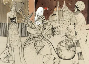 akwarela, długopis, gwasz, papier oliwkowy - 49 x 68cm