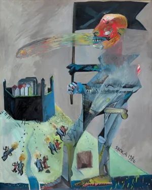 Jacek Sroka studiował w ASP w Krakowie w latach 1976-81. Do 1989 był pedagogiem na Wydziale Grafiki tej uczelni. Zajmuje się równolegle malarstwem i grafiką warsztatową w technikach metalowych, przeważnie barwną. Jako jeden z nielicznych artystów krakowskich, od lat 80. współtworzy obraz nurtu neoekspresjonistycznego w Polsce. Maluje w charakterystycznie uproszczony sposób, ostro definiując kolory i kształty, często przerysowując je w kierunku karykaturalnego traktowania postaci i sytuacji. Nie unika sarkazmu czy wręcz kpiny, jak w pracach o politycznym, antykomunistycznym podtekście. Jego obrazy odznaczają się rozmaitością ujęć przestrzennych. Uwagę zwraca zwłaszcza często przez artystę...