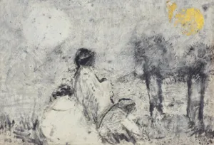 ołówek, papier beżowy naklejony na tekturę - 12.9 x 10.4cm