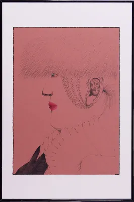tusze barwne pióro, papier naklejony na różowe pł. - 15.1 x 11.1cm