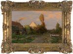 Roman Kochanowski (Kraków 1857 - Freising k. Monachium 1945) - malarz i grafik - był jednym z polskich artystów osiadłych i stałe działających w Monachium. Studia malarskie rozpoczął w Krakowie; początkowo w prywatnej pracowni Maksymiliana Cercha, a w latach 1873- 1875 w Szkole Sztuk Pięknych u Władysława Łuszczkiewicza i pejzażysty Henryka Grabińskiego. Przez następne dwa lata uczył się jeszcze na wydziale pejzażu w Akademii wiedeńskiej. W 1881 przeniósł się do Monachium, gdzie miał własną pracownię, a niebawem założył rodzinę. Często jednak przyjeżdżał do Krakowa, bywał w Poznańskiem, odbył podróż po Galicji i Podolu, rysując krajobrazy i widoki miast, które weszły następnie do albumu wydanego w Wiedniu w roku 1898. Artysta należał do monachijskiego Kunstvereinu, brał udział w wielu wystawach w Niemczech, w Wiedniu, w Londynie; swoje prace przesyłał też na pokazy krajowe. Malował przede wszystkim pejzaże a tylko z rzadka kwiaty i portrety. Stałym i ulubionym motywem jego obrazów był polski, podkrakowski krajobraz z wplecionymi weń postaciami ludzi. Obrazy artysty, malowane często na niewielkich deseczkach, pozbawione warstwy anegdotycznej odznaczają się niecodziennymi walorami malarskimi, harmonią koloru i pełnym liryzmu nastrojem. Zauważane i nagradzane na licznych wystawach były też wysoko cenione na rynku sztuki. W roku 1892, po wystawie w Wiedniu, jeden z obrazów Kochanowskiego zakupił do swoich zbiorów cesarz Franciszek Józef; dwa inne nabyli członkowie cesarskiej rodziny. Wielbicielem jego malarstwa był Karol Józef Luitpold, książę regent Bawarii. Wielka wrażliwość artysty na krajobraz i przyrodę widoczna jest także w jego rysunkach i akwafortach.