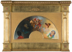 Kompozycja w kształcie wachlarza dekorowana jest czterema kobiecymi popiersiami i centralnie umieszczoną sceną wiejskiej zabawy namalowaną przez Jacka Malczewskiego i datowaną na rok 1893.