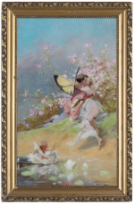 Jan Czesław Moniuszko (Wilno 1853 - Warszawa 1908) - syn kompozytora Stanisława - od roku 1871 uczył się malarstwa w warszawskiej Klasie Rysunkowej u Wojciecha Gersona i Antoniego Kamińskiego, a także prywatnie u Gersona i B.Dziadulewicza. W roku 1878 studiował w Akademii Sztuk Pięknych w Petersburgu. Od 1880 stale mieszkał i pracował w Warszawie. Malował sceny rodzajowe, historyczne, historyczno-rodzajowe i religijne. Jego dzieła wyróżniają się dobrą kompozycją, barwnością, wyczuciem nastroju i stylu epok historycznych, przy czym najbliższe były mu czasy stanisławowskie. Debiutował w roku 1879 na wystawie w warszawskiej Zachęcie, zwracając uwagę krytyki obrazem Pierwsze spotkanie Jadwigi z Jagiełłą. Później jeszcze wielokrotnie wystawiał w Zachęcie, w Salonie Krywulta, Salonie Ungra i Salonie Artystycz-nym gdzie w roku 1905 odbyła się zbiorowa wystawa jego prac (ok. 50 obrazów). Wystawiał także w Krakowie, w Łodzi i w Kijowie.