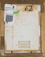 Na tzw. zaplecku u dołu nalepka producenta ram: Rudolf Neuhardt; l.g. nalepka warszawskiego domu aukcyjnego, obok numer (flamaster): 62.
