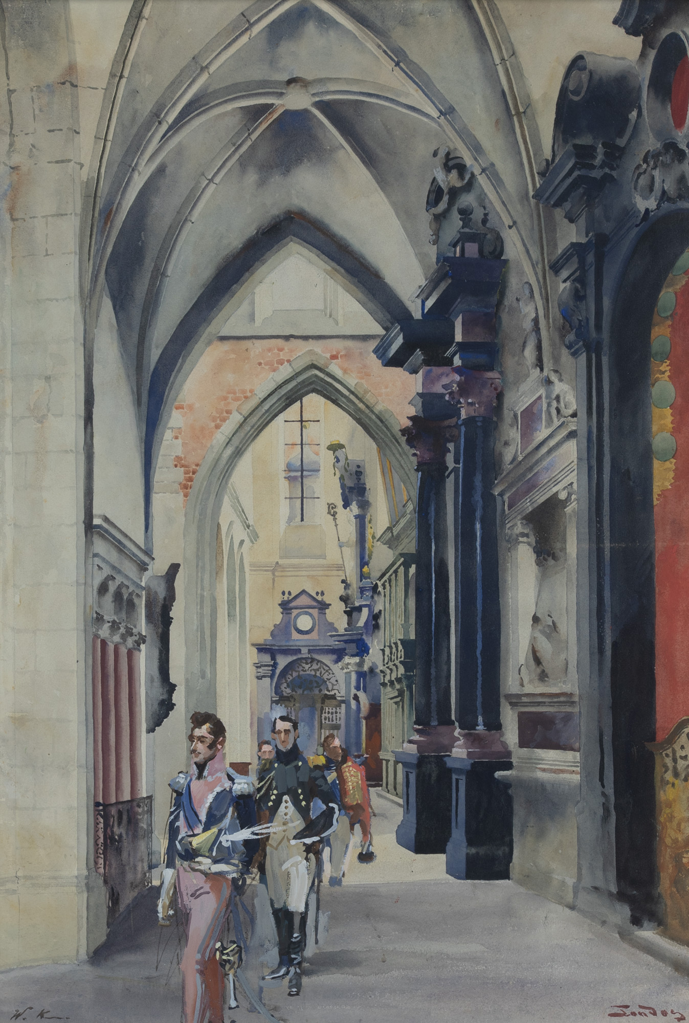 Obrazy przedstawiające Wnętrze katedry na Wawelu pochodzą z cyklu zatytułowanego Wawel przeszłości skarbnica, siedziba Piastów i Jagiellonów powstałego w roku 1910 i malowanego przez Stanisława Tondosa we współpracy z Wojciechem Kossakiem. Było to kolejne wspólne dzieło obu artystów (po cyklu Kościół Mariacki w Krakowie z 1892). Na akwarelach Tondosa przedstawiających architekturę Kossak – temperą lub gwaszem – domalowywał sztafaż; sylwetki ludzi, konie, a często całe scenki rodzajowe. W przypadku cyklu „wawelskiego“ były to przedstawienia postaci historycznych – królów, królowych, hetmanów czy wodzów.