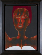 Portret Jerzego Nowosielskiego, wbrew klasycznej definicji gatunku, nie przedstawia konkretnej osoby o zindywidualizowanych cechach. Jest potraktowanym niezwykle syntetycznie kobiecym popiersiem, budowanym za pomocą oszczędnych środków formalnych: precyzyjnej, surowej linii i zredukowanej do czerni, czerwieni i bieli skali barwnej. Twarz portretowanej – o pustych oczach w migdałowatym kształcie i rozchylonych ustach, przywodzi na myśl skojarzenia z totemiczną maską plemienną. Nie sposób jednak odczytać jej jako „martwej“ i pozbawionej wyrazu. Odpowiada za to płomienny kolor, który niesie ogromny ładunek emocjonalny. „Neonowy“ kontur wydobywa z otchłani matowego, czarnego tła smukłe oblicze, żarzące się gamą ciepłych czerwieni i oranżów. Anonimową bohaterkę, niczym „zjawę z luministycznych misteriów“ otacza pełna niedookreślenia i tajemnicy aura. To odrealnione, rozświetlone pozaziemskim blaskiem przedstawienie...