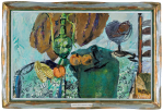 sygn. na odwr. na płótnie l.g.: JULIUSZ JONIAK | „MARTWA W ZIELENIACH ’03“ | 52 x 83 | 2003