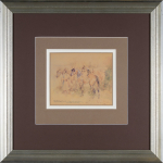 Juliusz Kossak (Wiśnicz 1824 - Kraków 1899) - malarz i ilustrator - był jednym z najpopularniejszych artystów polskich 2. połowy XIX wieku. Naukę rysunku i malarstwa rozpoczął we lwowskiej pracowni Jana Maszkowskiego; później wiele rysował z natury odwiedzając majątki szlacheckie na Ukrainie, Podolu i Wołyniu. W roku 1852 był w Wiedniu, na Węgrzech i w Petersburgu, a następnie zamieszkał na stałe w Warszawie. Lata 1856-1860 spędził w Paryżu, gdzie przyjaźnił się z Horacem Vernetem. Powróciwszy do Warszawy w latach 1862-1868 był kierownikiem artystycznym „Tygodnika Ilustrowanego”. W roku 1869 przeniósł się na stałe do Krakowa, skąd wyjeżdżał jeszcze do Monachium, by malować w atelier batalisty Franza Adama. Kossak był przede wszystkim znakomitym akwarelistą; rzadziej posługiwał się techniką olejną. Malował obrazy historyczne i batalistyczne, sceny rodzajowe ilustrujące życie i tradycje dworu szlacheckiego oraz obyczaje polskiego ludu. Ale prawdziwymi bohaterami jego obrazów były konie, których ruch, temperament, charakter i indywidualność potrafił po mistrzowsku przedstawić. Był także autorem wielu ilustracji do czasopism i książek, trafiającym bezbłędnie tak w klimat utworów literackich, jak i w tęsknoty i potrzeby odbiorców - czytelników Pieśni o ziemi naszej Wincentego Pola, Trylogii Henryka Sienkiewicza, Pana Tadeusza i poematów Adama Mickiewicza.