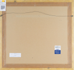 Na odwrocie na tzw. „zaplecku“ nalepki aukcyjne oraz nalepka informująca o szybie antyrefleksyjnej z filtrem UV70.