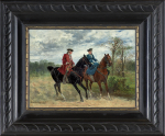Jan Chełmiński (Brzustów k. Opoczna 1851 – Nowy Jork 1925) popularny malarz z kręgu „polskich monachijczyków“, naukę rozpoczął u Juliusza Kossaka, a następnie kształcił się w warszawskiej Klasie Rysunkowej oraz w Monachium - w Akademii u Alexandra Strähubera i Alexandra Wagnera (1873-1875) i prywatnych pracowniach Józefa Brandta (1875) i batalisty Franza Adama (1876). Po studiach przebywał już stale za granicą - w Monachium, Londynie (lata 1882, 1888-1899), Paryżu (1899), jeździł do Petersburga (1889) i Nowego Jorku (1884), gdzie później, około 1915 zamieszkał na stałe. Nie zerwał jednak kontaktów z krajem, a swoje prace często przesyłał na warszawskie wystawy. Jego obrazy cieszyły się ogromnym powodzeniem. Malował przede wszystkim sceny wojskowe i batalistycznie, najchętniej z czasów Księstwa Warszawskiego i wojen napoleońskich, a także obrazy rodzajowe i epizody z polowań. Zajmował się ilustracją książkową; m.in. ilustrował tom myśliwskich opowiadań Theodora Roosevelta. Był kolekcjonerem dawnej broni i wybitnym znawcą żołnierskiego umundurowania. Wiele obrazów artysty wciąż znajduje się za granicą - w Anglii, Niemczech czy Stanach Zjednoczonych. Nieliczne z nich pojawiają się w sprzedaży antykwarycznej, stale budząc żywe zainteresowanie zbieraczy.